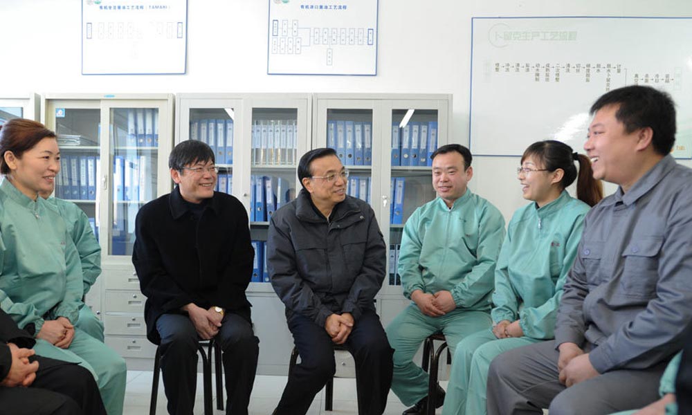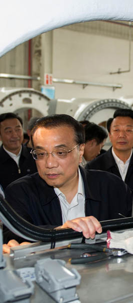 5月22日,李克强总理在国电联合动力技术(赤峰)公司考察。