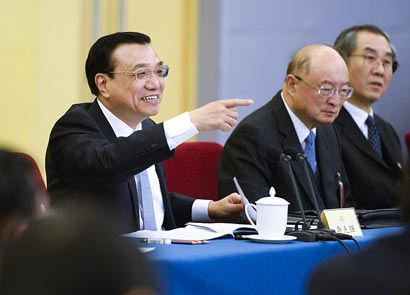 3月4日,李克强看望出席全国政协十二届二次会议的委员并参加分组讨论时强调,必须把控大局,集思广益,做好预案,保持经济稳中向好局面。