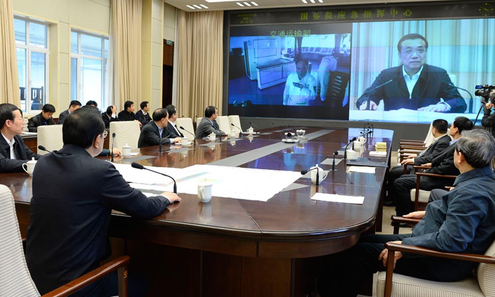 3月12日上午,李克强总理参加完政协闭幕会后来到中国国务院应急指挥中心,与前方中国搜救船长通话,了解马航MH370失联客机搜救最新进展情况。