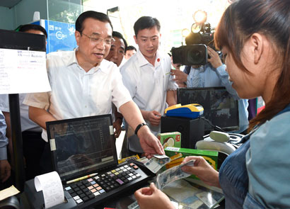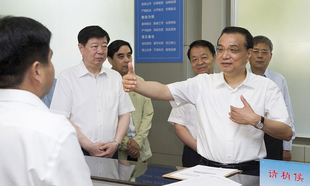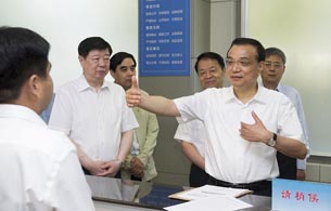 7月25日,李克强总理在济南山东省交通厅服务窗口调研改革进展。
