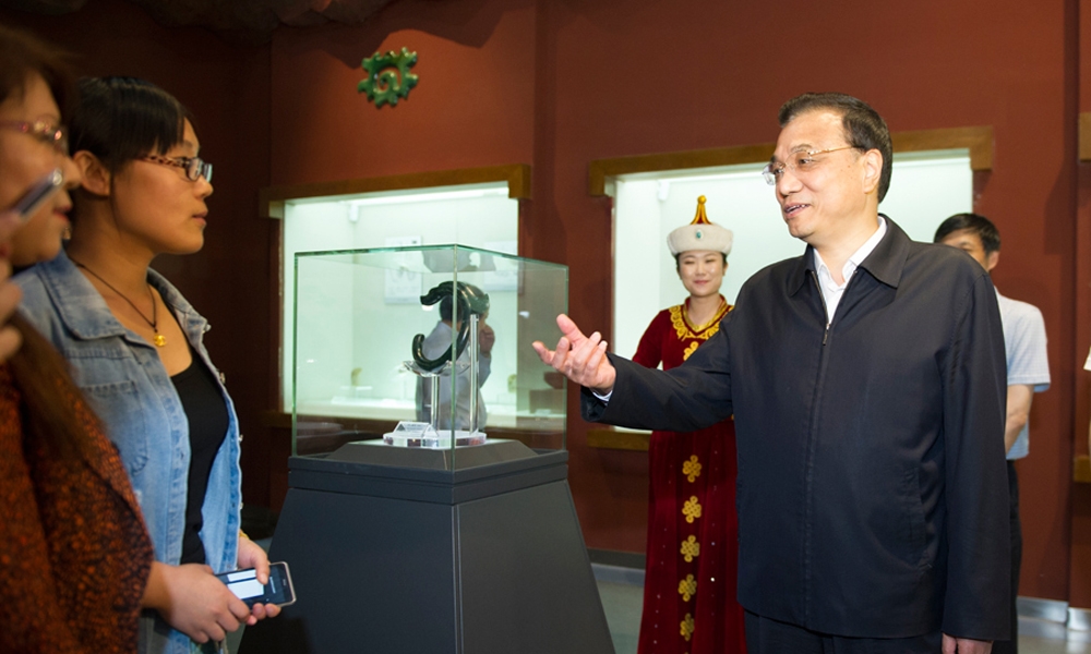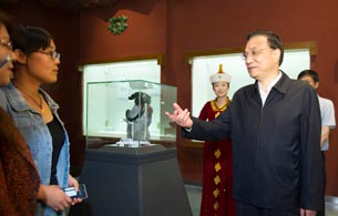 5月23日,李克强总理在赤峰博物馆与参观者交谈。