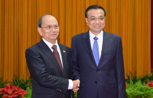 6月28日下午,李克强总理在人民大会堂分别会见缅甸总统吴登盛和印度副总统安萨里,欢迎他们访华并出席和平共处五项原则发表60周年纪念活动。