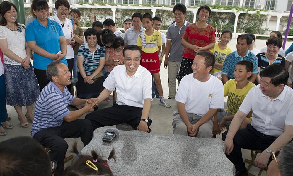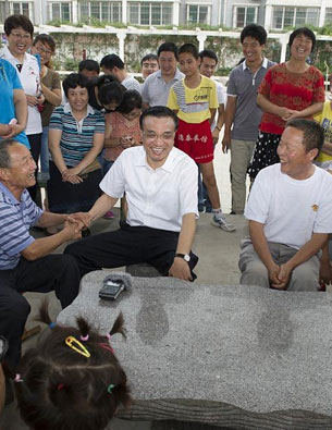 7月24日,李克强总理在山东德州袁桥社区与居民话家常。