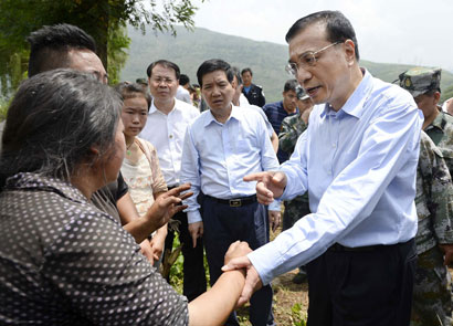 8月4日下午,李克强来到云南鲁甸地震震中龙头山镇灾民临时安置点,看望受灾群众。