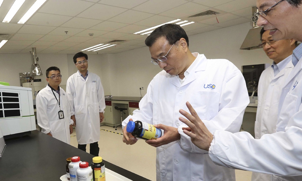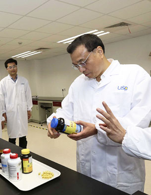9月18日,国务院总理李克强考察美药典标准研发技术服务(上海)有限公司。