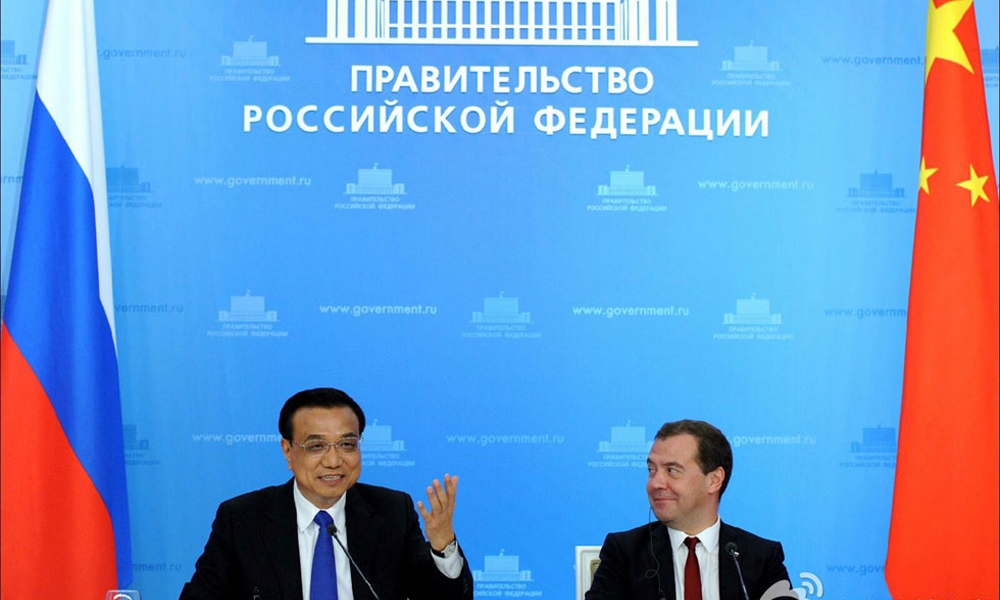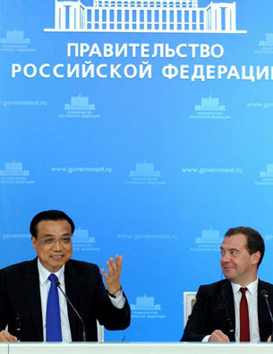 10月13日,中国国务院总理李克强与俄罗斯总理梅德韦杰夫在莫斯科举行中俄总理第十九次定期会晤后共同会见记者。