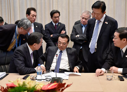 11月13日,中国国务院总理李克强在缅甸内比都会见印度总理莫迪。