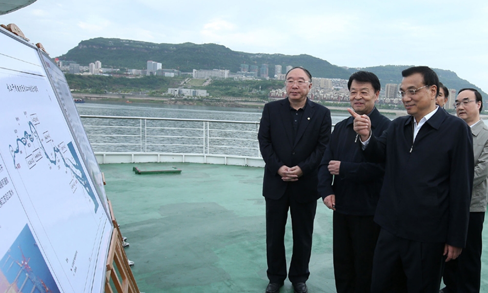 4月27日,李克强总理在重庆万州港乘船考察长江黄金水道。
