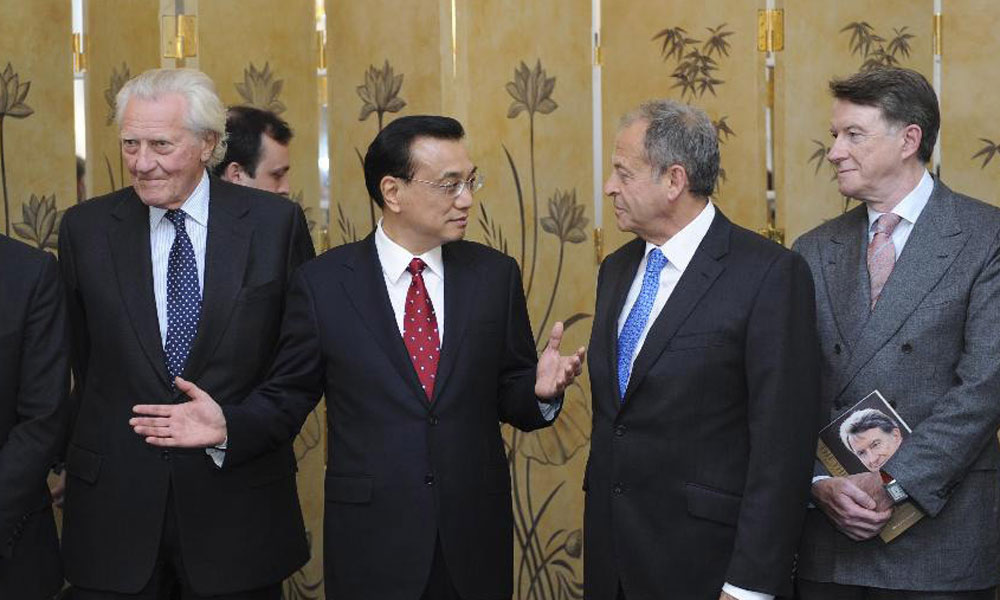 6月18日,国务院总理李克强在伦敦会见英国48家集团俱乐部主席佩里(右)和青年破冰者代表。