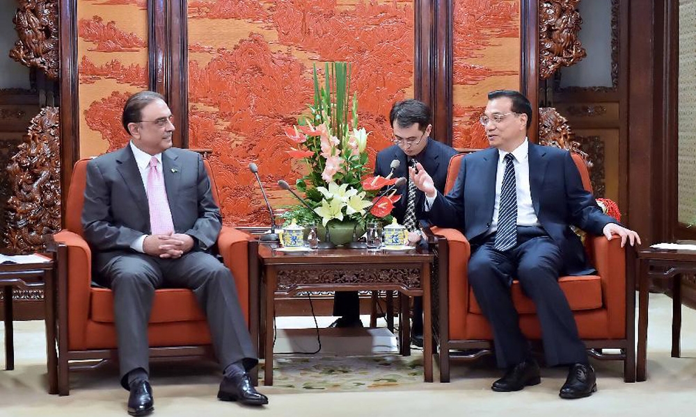 8月27日,李克强在中南海紫光阁会见巴基斯坦人民党联合主席、前总统扎尔达里。