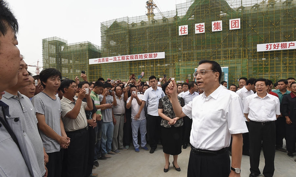 9月11日,李克强来到天津市西于庄棚户区迁建施工现场看望正在看房的拆迁安置群众。