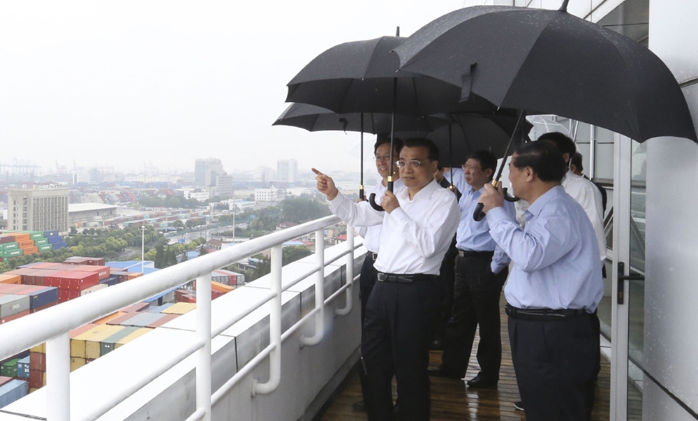 9月19日,李克强考察上海自贸区外高桥物流中心。