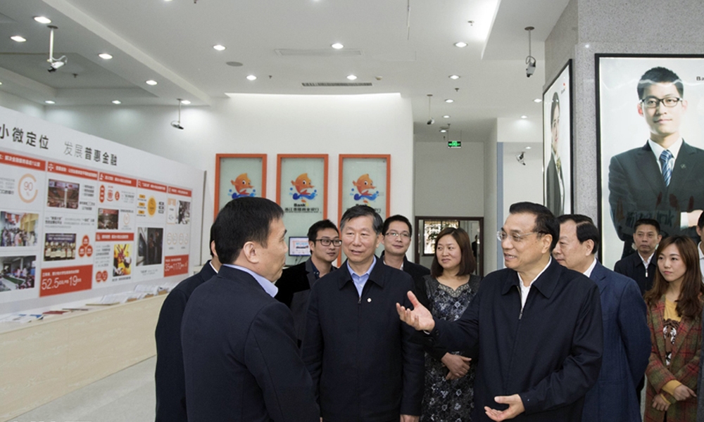 11月21日,李克强在泰隆银行调研降低融资成本政策落实情况。