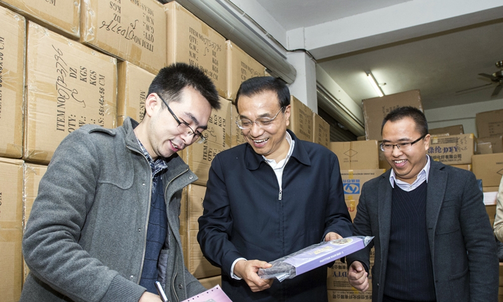 11月19日,李克强在义乌青岩刘村的一家网店了解经营情况。