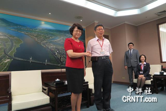 台北市长柯文哲上午在市府会见上海市副市长翁铁慧。中评社