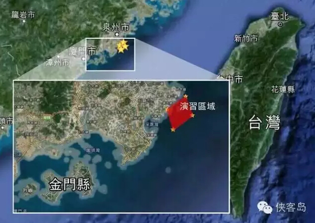 图中红框处为演习区域,明白如岛上诸君一眼就能看出来,演习贴近大陆海岸一侧,演习区域也不大。不但避开了金门,离台湾本岛甚至所谓“海峡中线”都还远着呢。有媒体查证,解放军军演活动范围在浙江沿海和汕头沿海一带。