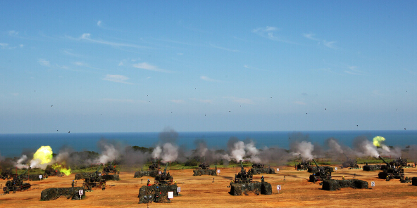 图:陆军六军团10日在新竹实施反舟波射击,38门中长程火炮齐发中央社