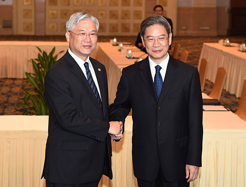 图:国台办主任张志军14日在广州与台湾方面陆委会主委夏立言举行工作会面/新华社