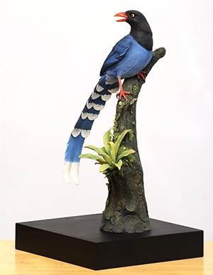 这款台湾蓝鹊瓷器出自杰作陶艺公司,长31公分、宽28公分、高53公分,重量约2.7公斤,由设计师李国钦设计创作。