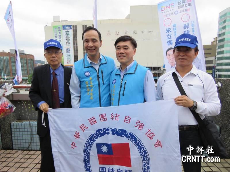 朱立伦、郝龙斌,开心与支持民众合影。/中评社