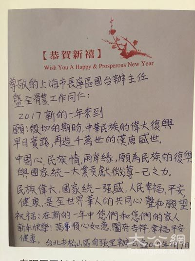 台湾基层社区工作者给上海同行写来的信。张帆摄