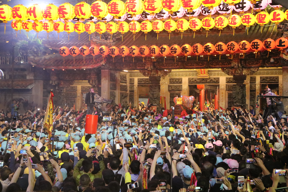 图:“三月疯妈祖”,上月台中市大甲妈祖銮轿在万众信徒簇拥下,銮轿缓缓步出庙门,踏上三百五十多公里的进香路程,展开九天八夜绕境之旅\资料图片