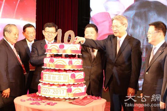 随后,张志军、江丙坤、王屏生等在全场嘉宾的见证下,共同为台企联十周年切下生日蛋糕并举杯共饮以示庆祝。