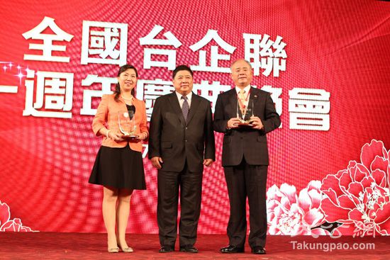 台企联会长王屏生(中)向两位代表颁发感谢状(大公网记者罗婧姝摄)