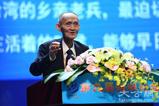 图:82岁的台湾老人高秉涵日前在厦门举办的海峡论坛上讲述了自己抱了200多坛台湾老兵骨灰回故土的故事/蒋煌基摄