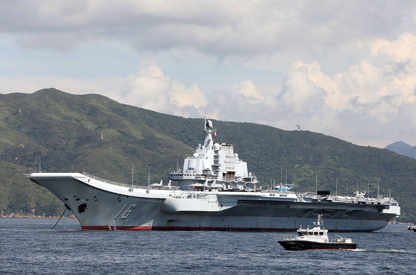 图:辽宁舰结束访港后,经过台湾海峡,台军方大为紧张。图为辽宁舰11日驶离香港海域/资料图片