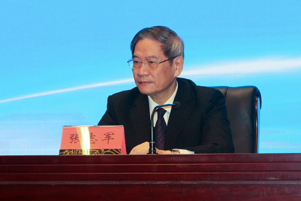 图:国台办主任张志军24日在太原出席两岸关系学术研讨会/中新社