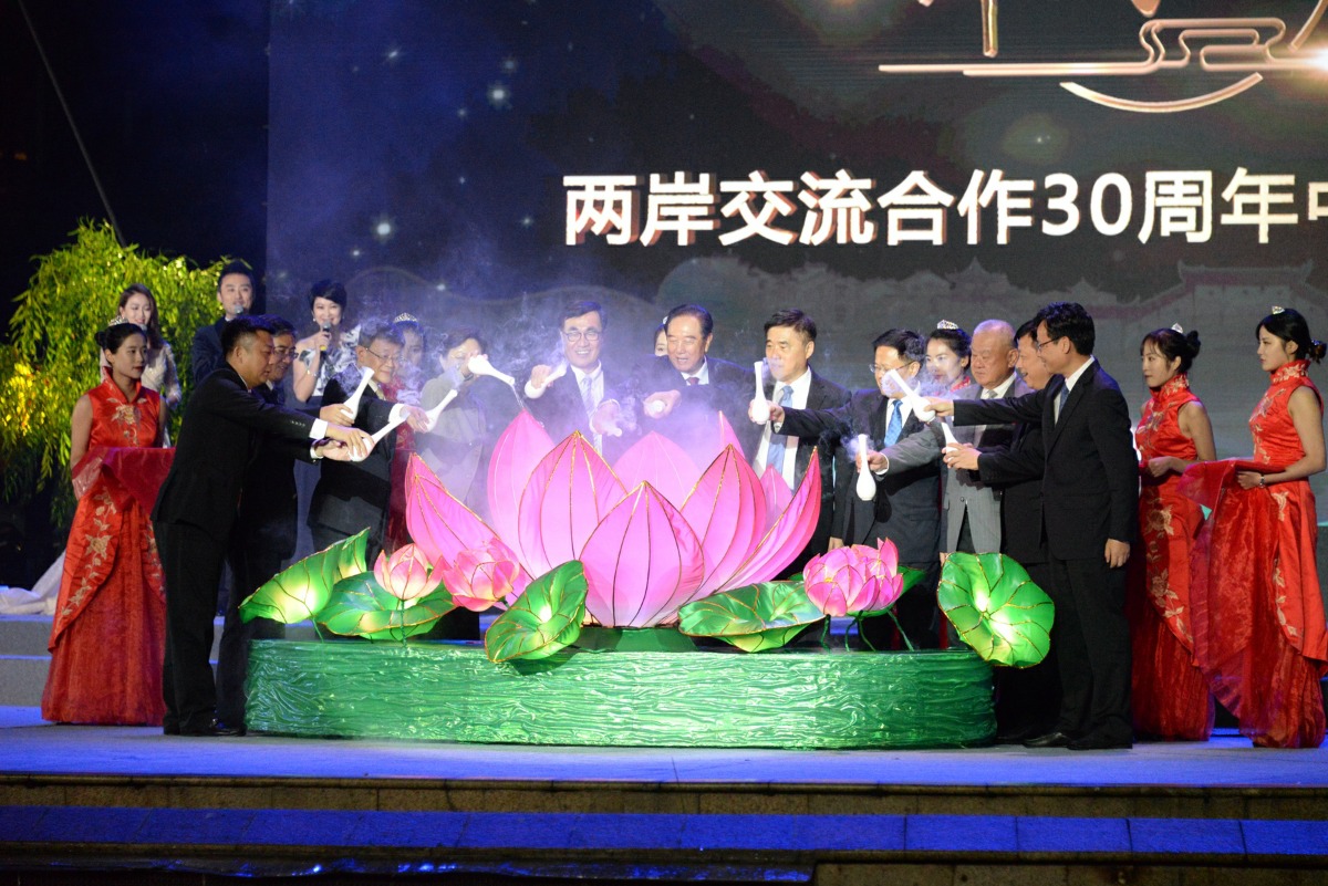 大公网9月20日讯(记者 贺鹏飞)今年是海峡两岸打破隔绝状态、开启民间交流交往30周年,两岸有关方面20日晚间在江苏昆山隆重举行“两岸情 一家亲”主题晚会暨2017海峡两岸(昆山)中秋灯会亮灯仪式,纪念两岸30年所走过的不平凡的历程。海协会顾问陈云林国台办副主任郑栅洁、中国国民党副主席郝龙斌等嘉宾共同为灯会点灯,郝龙斌并在现场号召两岸一起努力,让两岸共创双赢、变得更好。