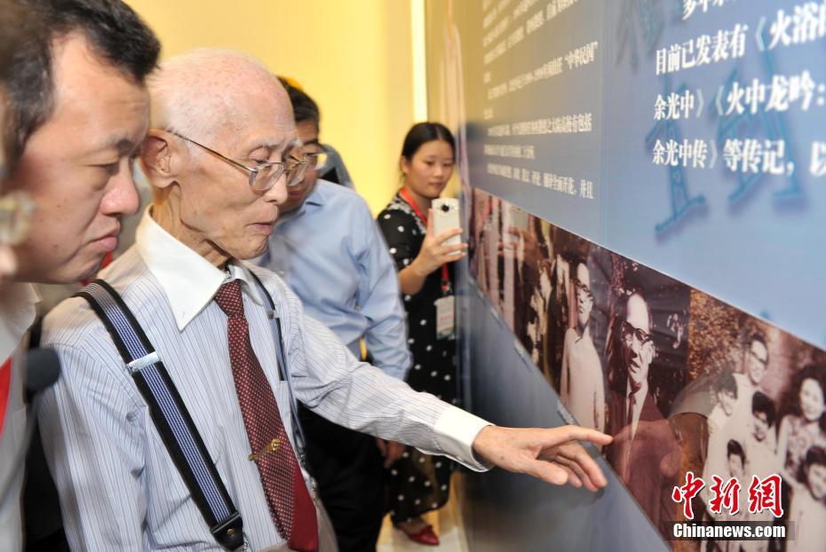 图为2015年11月8日,余光中与来宾一同参观文学馆。当日,余光中文学馆在福建永春举行开馆仪式。中新社记者 吕明 摄(资料图)