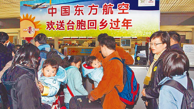 图:台湾方面十八日突然宣布暂不核准东方航空和厦门航空共一百七十六班两岸春节加班机,预料将导致大批台胞无法回台过年/资料图片