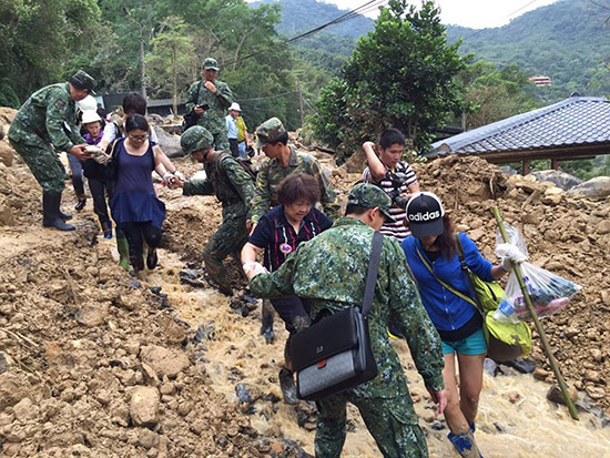 图:台军9日凌晨前往新北市乌来区,执行救援任务,协助受困山区的民众下山\中央社
