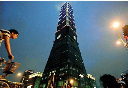 图:台北101大楼亮起红、白、蓝三色灯悼念巴黎恐怖袭击事件遇难者/法新社