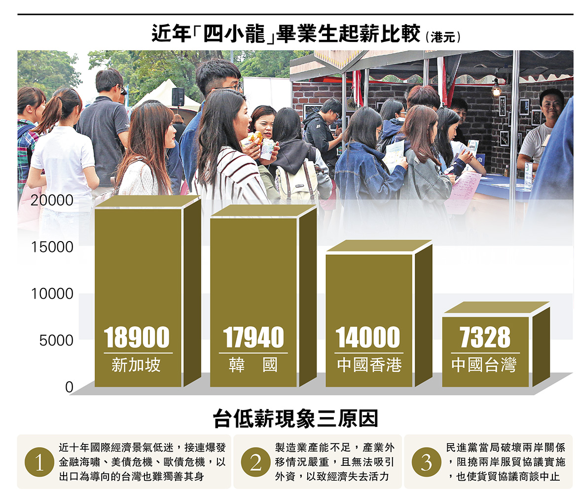 台当局“行政院长”赖清德向上市企业喊话,员工起薪新台币3万元(约7894港元)以下太低。对此,企业界回应,员工自己有上进心的话,多培养第二、三专长,起薪绝不低于此。他们并强调:“当局没权要求企业提高薪水”。岛内舆论则呼吁当局应改善营商环境。