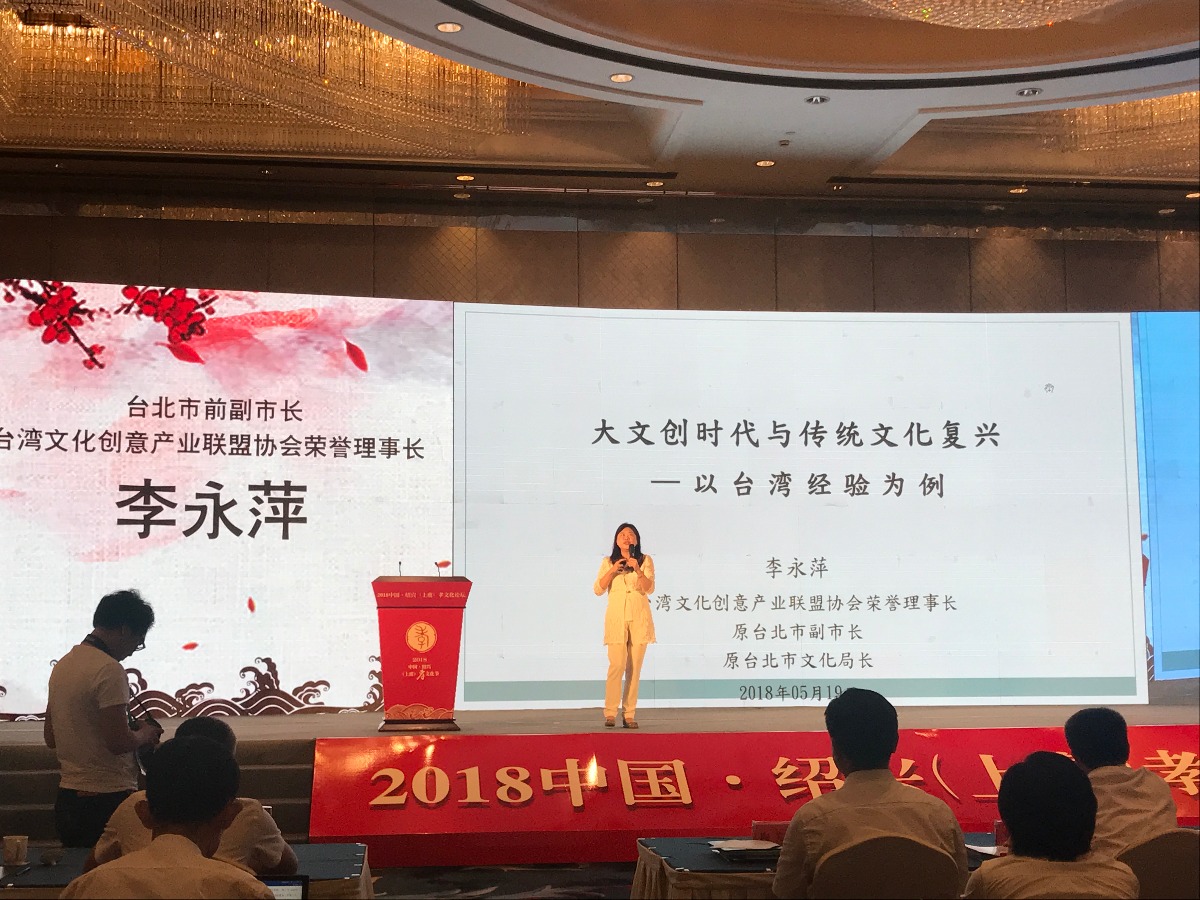 大公网5月21日讯(记者俞昼 通讯员许惠洁)“复兴传统文化,就是以文创手段将抽象文化精神具象化、商业化、产业化。”在近日举办的2018中国·绍兴(上虞)孝文化论坛上,台北市前副市长、台湾文化创意产业联盟协会荣誉理事长李永萍表示,两岸可以在社区总体营造、园区创意翻新方面共组“文创乡创(社造)学院”,集合两岸创客共建“乡村振兴体验经济示范基地”。