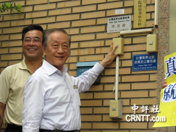 新党主席郁慕明按铃向“高等法院检察署”申告。/倪鸿祥摄
