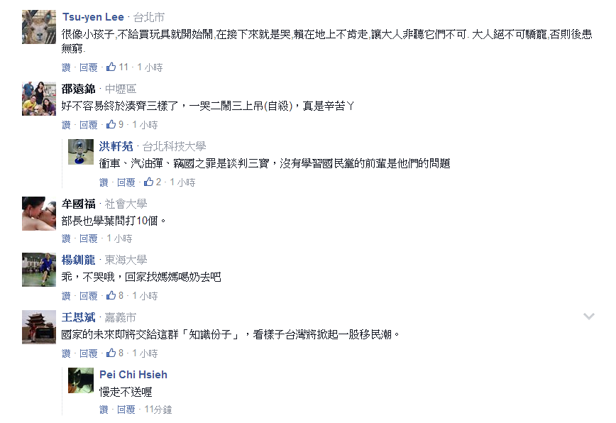 反课纲学生们抱头痛哭的场景让不少人心疼,但是台湾网友们对学生们动不动就哭十分不满,纷纷表达自己的看法。