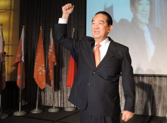大公网8月6日讯 据香港中评社报道,亲民党主席宋楚瑜上午宣布参选2016“总统”,出场声势浩大,除了在门口有支持者持续高喊“当选”外,一进到场内,党员们、支持者也大喊宋楚瑜当选,“总统”好!他也振臂鼓励支持者。
