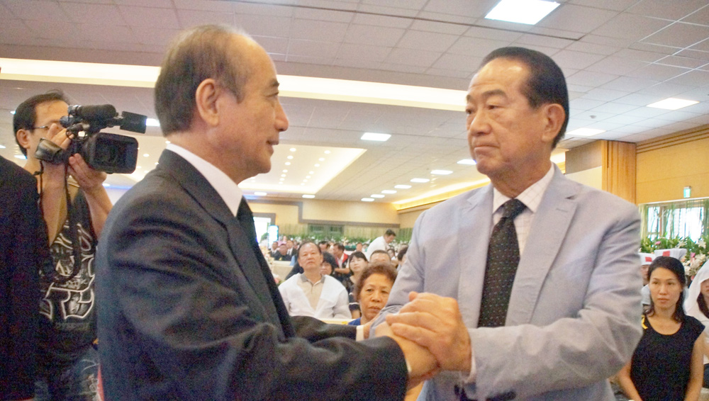 前高雄市议员李荣宗母亲林鲜13日公祭,亲民党主席宋楚瑜(右)与“立法院长”王金平(前左)互动良好,再次引起外界对宋王合作的猜想 /中央社