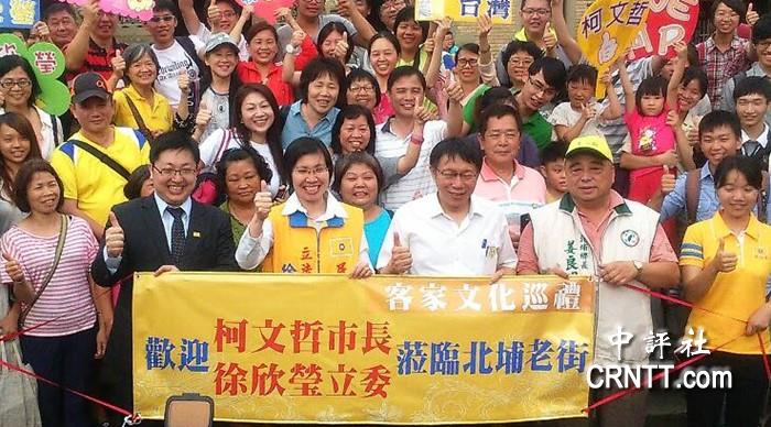 台北市长柯文哲在双城论坛前夕,回到新竹故乡,并在民国党主席徐欣莹等人陪同,前往北埔商圈观摩客家文创文化。(照片:民国党主席徐欣莹提供)