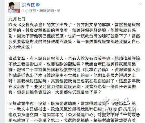 以下为洪秀柱最新脸书发言全文: