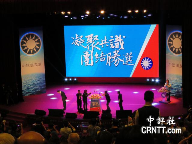 国民党第19次全党代表临时会议,朱立伦上台演讲。/中评社