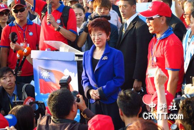 洪秀柱在国民党换柱后,出走国父纪念馆向群众讲话。/中评社