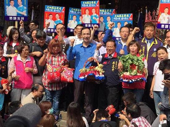 朱立伦也向开漳圣王报告,发誓当选一定认真打拼,不为个人,而是拼经济、拼建设。(中国台湾网王思羽)