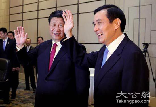 今天,我与习近平先生分别以台湾与大陆领导人的身分,穿越66年的时空,伸手相握,握著两岸的过去与未来,也握著中华民族振兴的希望,深具历史意义。