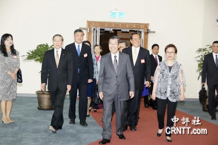 中评社桃园11月16日电(记者 黄文杰)萧万长出任2015APE峰会领袖代表,16日上午11点30分许搭乘专机启程赴菲律宾。他出发前致词提到,希望努力提升国际场域的能见度,萧万长夫人朱俶贤也随行,一身黑色套装加上透明衫,显得显得端庄典雅。包括“总统府”秘书长曾永权夫妇、“国家安全会议”秘书长高华柱伉俪,以及“外交部”部长林永乐夫妇都前来送机,夫人们都盛装出席,陪着萧万长夫妇到登机口。