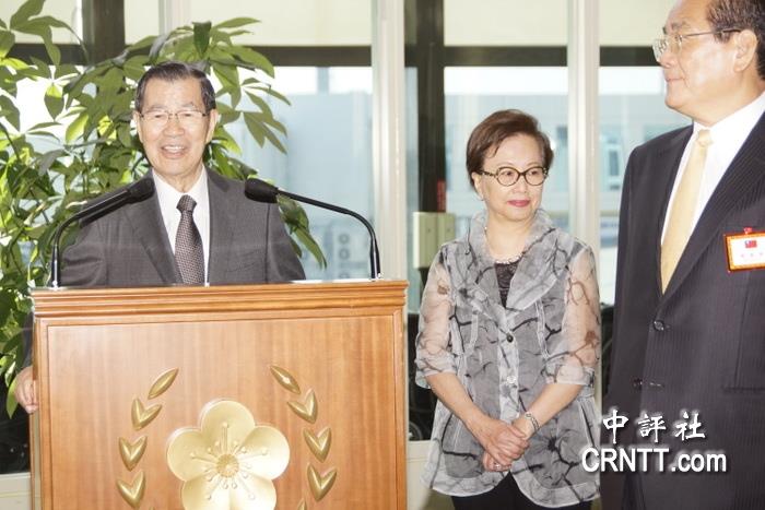 萧万长伉俪出席APEC会议,搭机出发前致词。/中评社